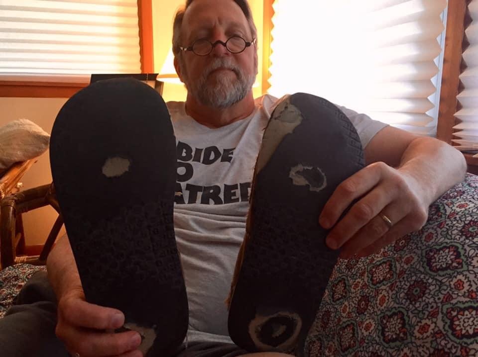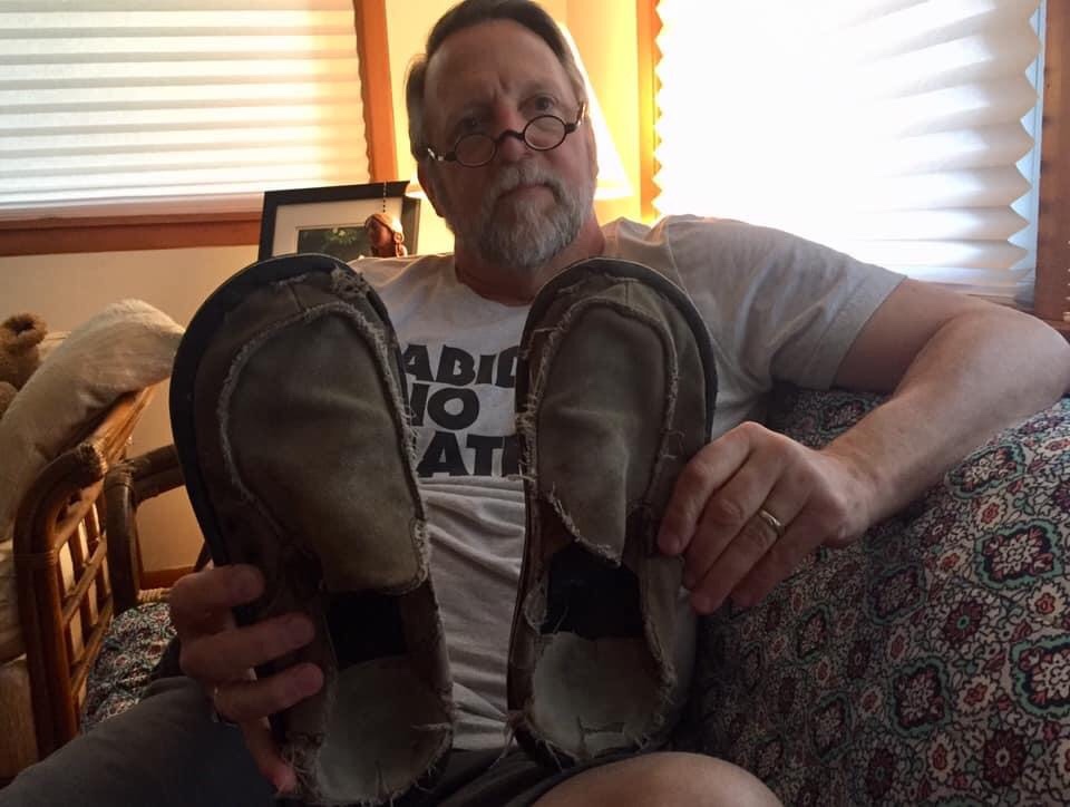 Clothes stuff: We’re still not comfortable going into a store and shopping for clothes (I’m not comfortable shopping for them period), so we ordered some items on-line. My favorite going-on-20-year-old slippers bit the dust yesterday after we determined the strange here-and-gone funk we’d been sniffing was emanating from them. They’d also worn through in three places. But that’s a sign they were just getting perfect.