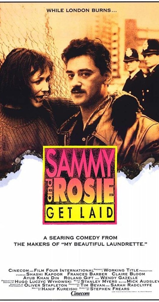 I have mentioned this in a past entry, but I am reading and loving Hanif Kureishi’s The Buddha of Suburbia. It’s a less annoying Catcher in the Rye, very much updated to post-Sexual Revolution (is that capitalized?) social living and transplanted to just-post-punk Eighties London. I bring it up again for people who think everything ever filmed is streaming. Sammy & Rosie Get Laid, for which Kureishi wrote what must be a very similar screenplay, is not streaming. It is not available on DVD; it never made it to DVD. Used VHSes run in the $80-100 range; I tried to Christian a guy down to a decent price for his copy on eBay, but got denied. Word to the wise from a dude that still likes physical media.