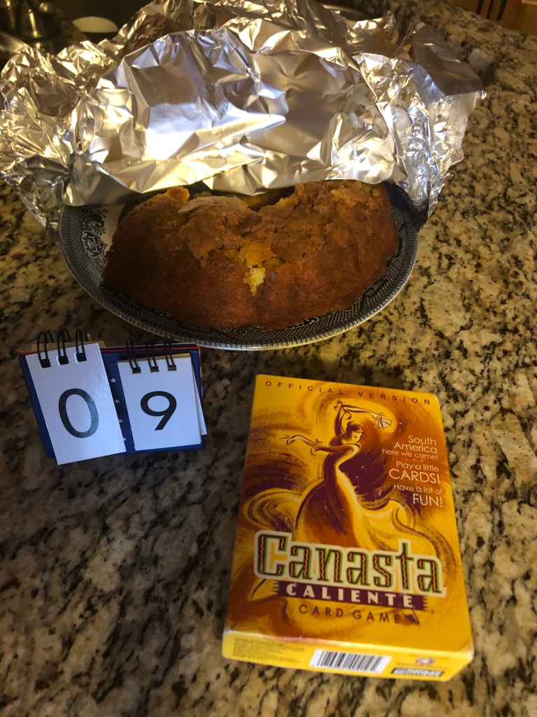 In the afternoon, I made grilled cheese sandwiches for the three of us (an accomplishment for me), we (I?) kept one eye on the Buffalo – Indy game (I’m rooting for Chiefs – Bills in the playoff future), and played two fun rounds of Canasta. We love that card game–the cards are beautiful–but neither one of us had ever “frozen the prize pile,” which is kind of a d**k / b***h move, which we came to understand after Nicole tried it to keep me from winning. It slowly, very slowly, kills a round, but it can insure a win if employed at the right moment (which it wasn’t, unfortunately for my spouse). However, I invented an “anti-freezing” rule (you can sacrifice a “big” Wild Card into the prize pile) and the game revived. In retrospect, we advise not employing the freeze in the first place.